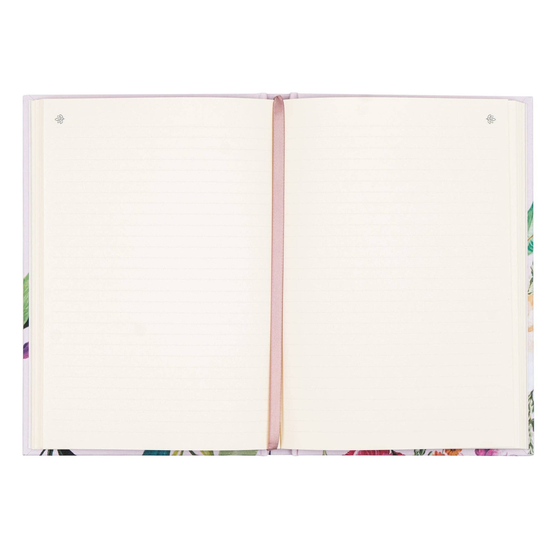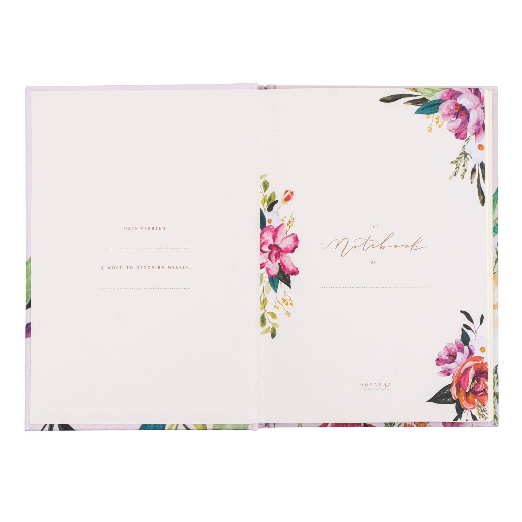 This beautiful notebook's floral cover features the verse, “Consider the wildflowers . . . How much more will he clothe you?” Journal your thoughts, prayers, and more in this beautiful, durable notebook from Hosanna Revival. Product Details - 150 pages (lined) - Paper weight: 100gsm - Dimensions: 5.75" x 8.25" - Cloth over board cover - Satin ribbon