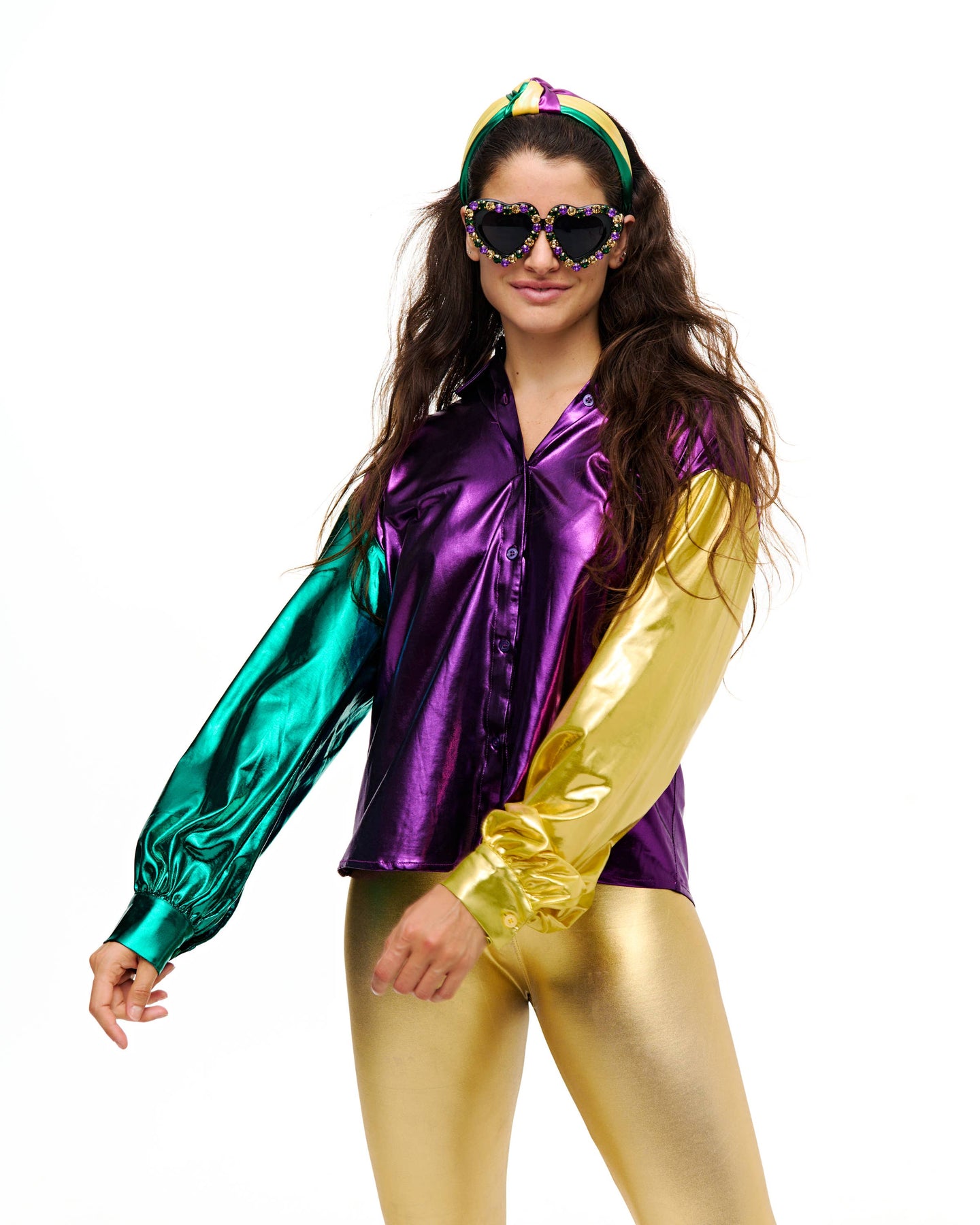 Mardi Gras metallic button down shirt-SongLily-Shop with Bloom West Boutique, Women's Fashion Boutique, Located in Houma, Louisiana