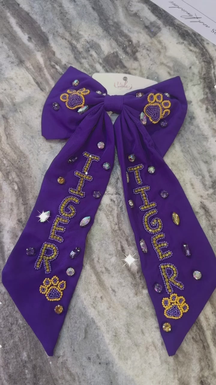 Game Day Tiger Embroidered Bow Barrette Hair Clip