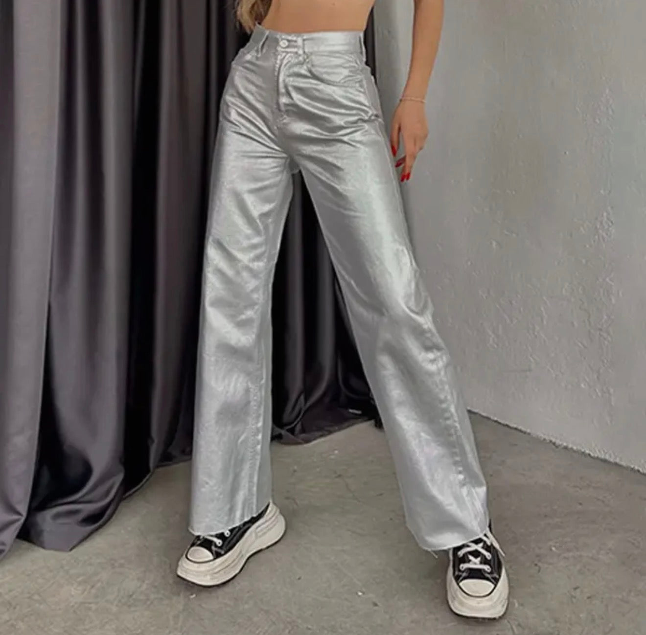 Women’s Jessalyn Metallic Gold High Rise Straight Pant, gold game day pants, silver game day pants