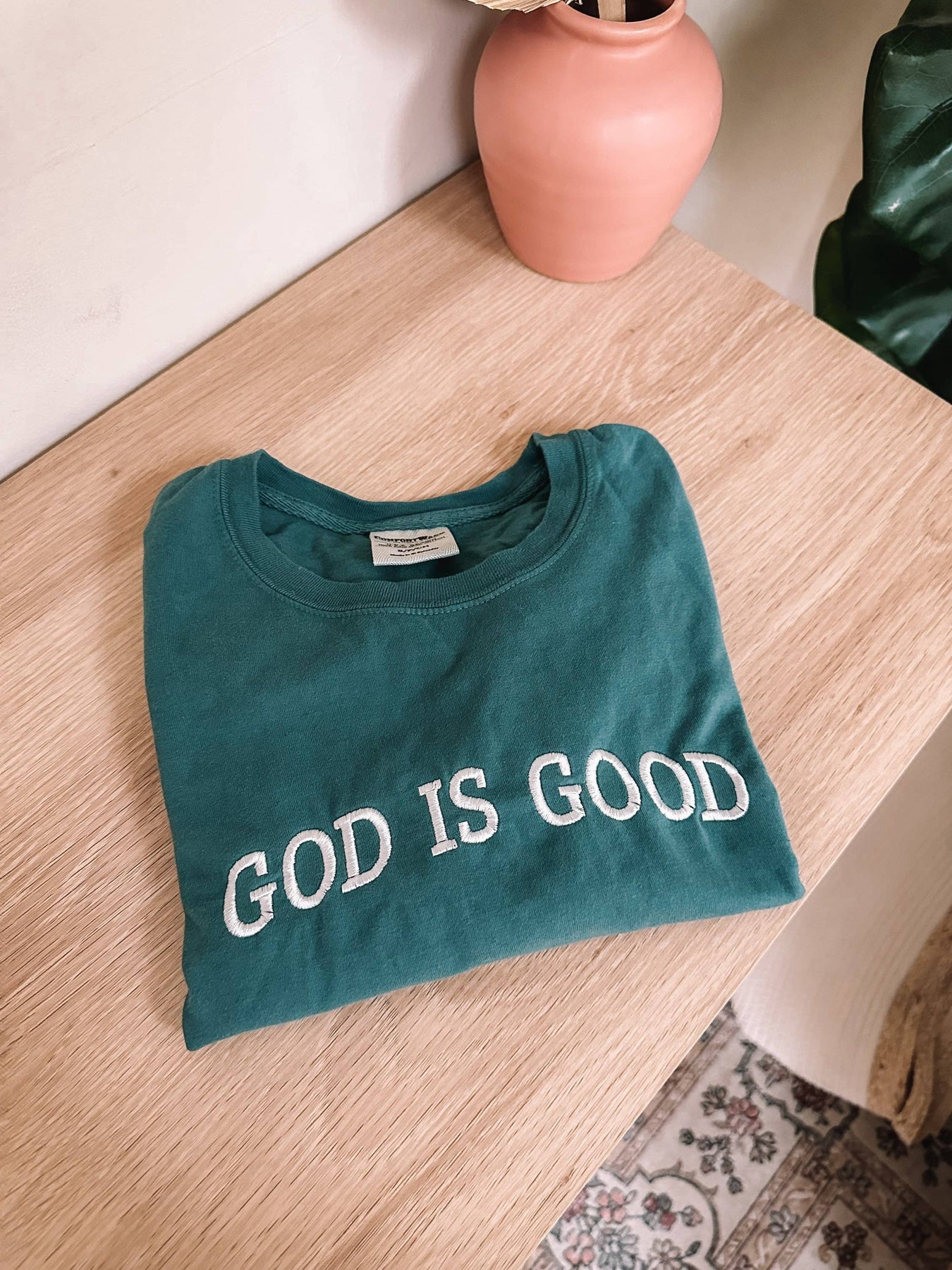 Embroidered GOD IS GOOD Tee-Graphic Tees-Honey Soul LLC-Shop with Bloom West Boutique, Women's Fashion Boutique, Located in Houma, Louisiana