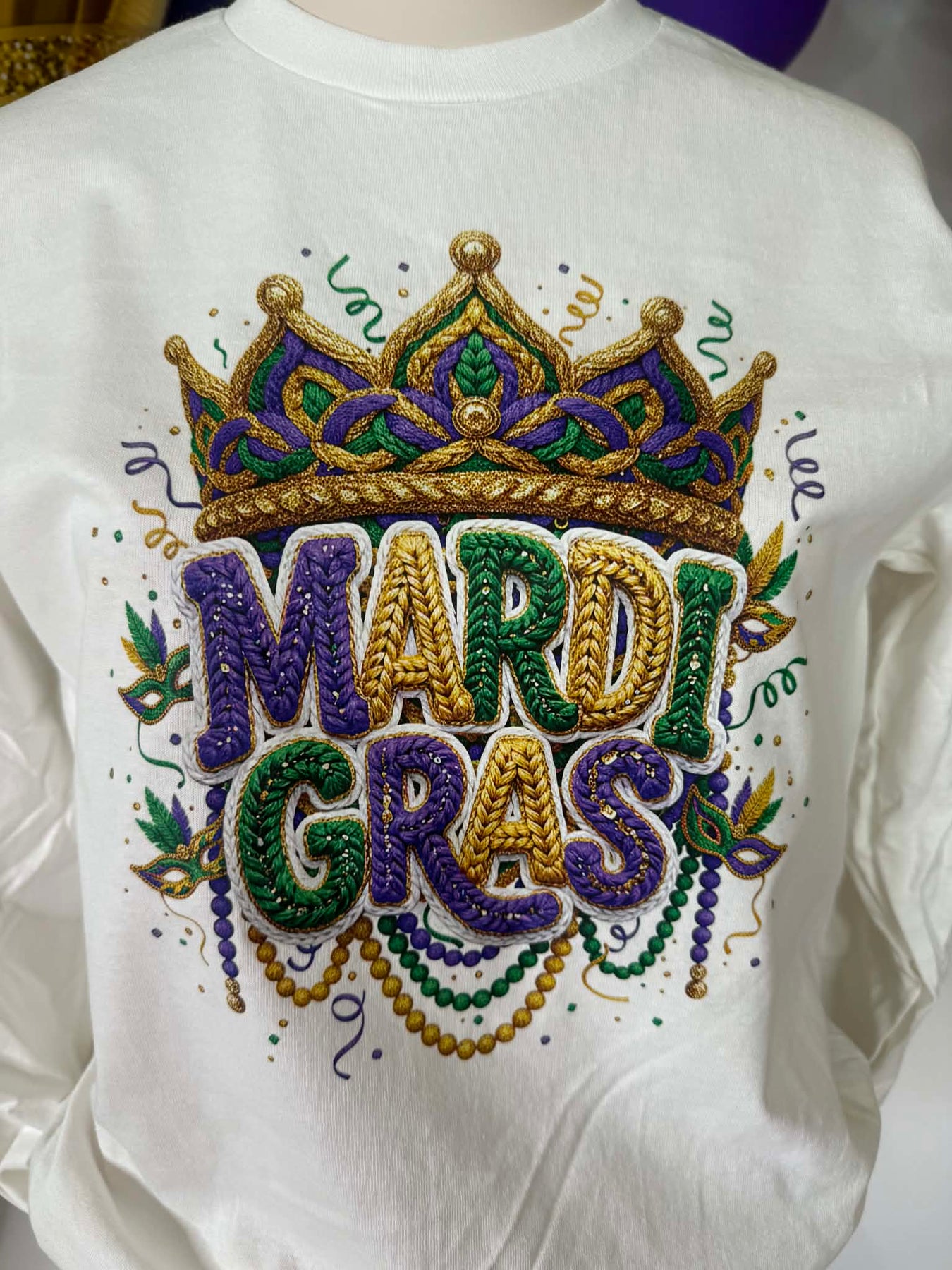 Celebrate Mardi Gras in vibrant style with this eye-catching top featuring purple, green, and gold DTF design. Perfect for parade season, this piece captures the festive spirit of a Mardi Gras queen with regal crown and bead motifs. The bold color palette and detailed graphics make it an instant conversation starter at any celebration. Whether you're hitting the parade route or embracing the season's energy, this top delivers authentic Mardi Gras flair that stands out from the crowd.