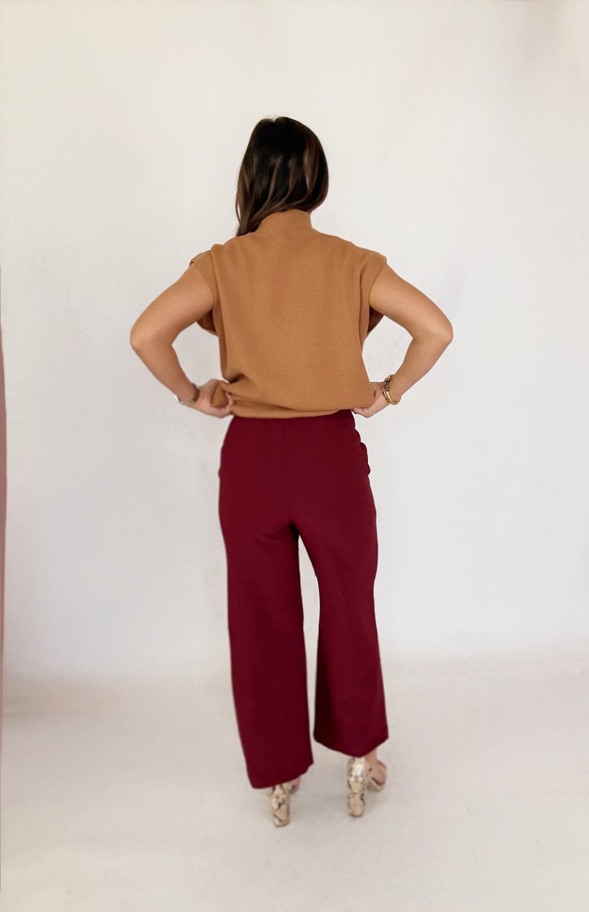 Elevate your wardrobe with The Willow Burgundy Pant, featuring a high waist and wide-legged silhouette that effortlessly blends comfort with sophistication. Perfect for dressing up, these pants create a flattering, elongated look while providing ease of movement throughout your day or evening events. Whether paired with a tailored blouse or a sleek blazer, they deliver a polished, chic appearance ideal for any dressy occasion.