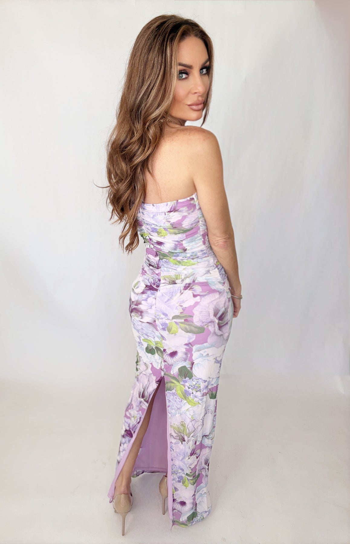Slip into effortless elegance with the Bloomside Brunch Maxi Dress, a stunning floral strapless design that captures the essence of refined femininity. The delicate lavender palette pairs beautifully with intricate floral detailing, while strategic ruching along the sides creates a flattering silhouette that moves with you. Perfect for garden parties, weddings, or sophisticated evening occasions, this maxi dress combines timeless style with modern comfort. The strapless neckline offers a romantic touch, making it an instant favorite for those seeking a show-stopping yet wearable piece that transitions seamlessly from day to night.