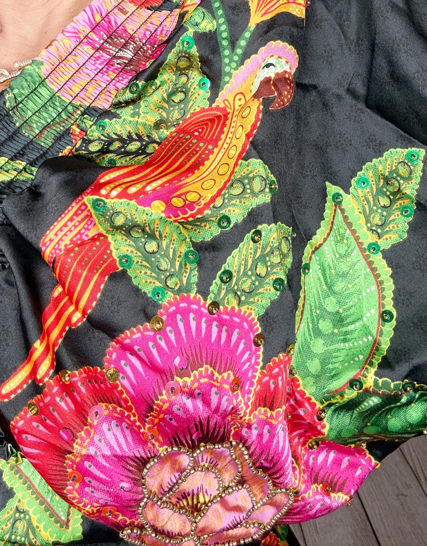 Embrace vibrant island vibes with the Coco Cay Blooms Set, perfect for resort escapes and summer nights out. This short set features exquisite sequin and beading details that catch the light beautifully, adding a touch of glamour to your look. Lightweight and stylish, it’s designed to keep you comfortable while turning heads wherever you go. Elevate your warm-weather wardrobe with this stunning floral ensemble that effortlessly blends tropical charm with evening elegance.